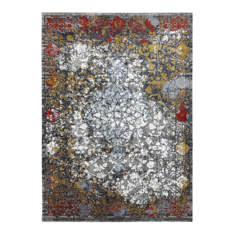 فرش ماشینی 700 شانه فرش مشهد زمینه خاکستری حاشیه موشی مدل 87570
