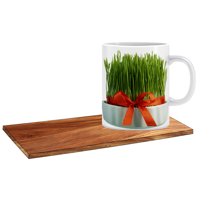ماگ ال ایکس پی طرح سبزه هفت سین کد 384 به همراه زیر لیوانی