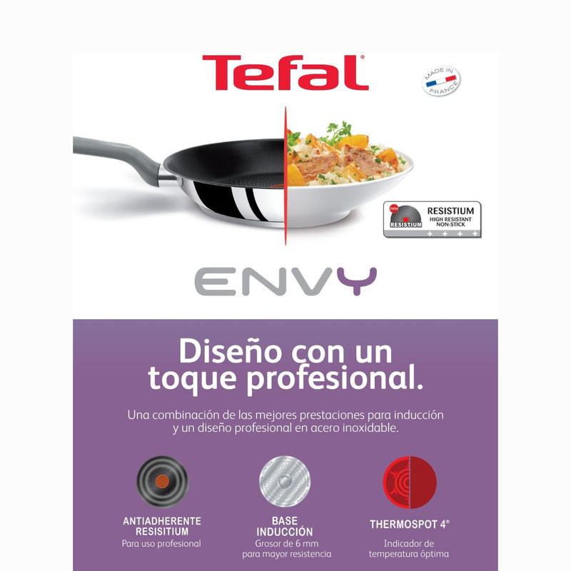 تابه تفال مدل ENVY سایز 24 سانتی متر دارای نشانگر گرمایی (Termo-Spot) روکش با مقاومت بالا و شستشوی آسان قابلیت استفاده در اجاق گازی، القایی و برقی قابلیت شستشو با دست و ماشین ظرفشویی دسته باکالیت با کیفیت عالی