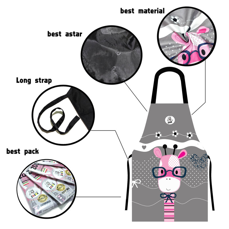 دارای بسته بندی قلابدار و قابل باز و بست شدن با دکمه رنگ ثابت و کاملا قابل شستشو دارای 2 بند بلند قابل گره زدن در پشت دارای بند گردنی بسیار لطیف دارای آستر ضد آب