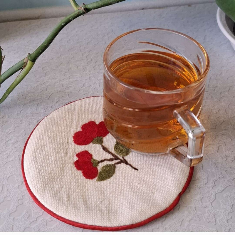 این محصول باعث می شود بین لیوان و میز فاصله قرار بگیرد و از سطوح میز محافظت می کند و مانع از لکه و خراش روی سطح میز میشود. این محصول قابل استفاده بر روی تمام سطوح است و از لغزش لیوان بر روی میز جلوگیری میکند. با توجه به ارزش این محصول و قیمت مناسب آن، می توان از آن به عنوان هدیه سازمانی نیز استفاده کرد. طرح دوخته شده روی این محصول، گل زعفران است. زعفران اصلی ترین محصول کشاورزی قائنات است و در سال فقط حدود یک هفته شکوفا می شود.این گل نماد شادی، نشاط و دوری از افسردگی است.