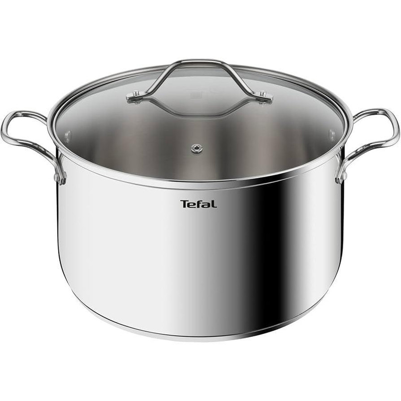 قابلمههای استیل تفال ظاهری خاص دارند که شاید موردپسند همه نباشد اما کیفیت بالایی دارند و جزو یکی از کمخطرترین ظروف پختوپز هستند. این قابلمه از استیل ساختهشده و برای درپوش آن از پیرکس استفادهشده است. ارتفاع قابلمه در حدود 17.5 سانتیمتر است و برخلاف عقیدهی بسیاری از افراد که قابلمه استیل را برای پخت برنج مناسب نمیدانند، برنج و حتی تهدیگ دلچسبی میتوان با آن تهیه کرد فقط باید مراقب سوختن کف ظرف بود که البته این دقت برای سایر قابلمهها با جنس مختلف هم صدق میکند. این قابلمه را میتوان داخل ماشین ظرفشویی شستوشو داد چراکه از استیل ضدزنگ ساختهشده و تغییر رنگ نخواهد داد. تفال یکی از برندهای مطرح در زمینهی تولید ابزار و محصولات برقی و غیر برقی خانگی است که کیفیت بالای تولیدات آن در همهی کشورها زبانزد است و به دلیل محصولات بینظیرش است که در بین تعداد هزاران برند تفال جزو ده برند مطرح است.