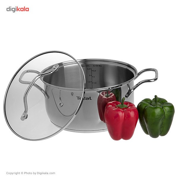 ظاهر قابلمههای استیل را شاید همهی افراد نپسندند اما در مورد سالم بودنشان نسبت به سایر ظروف پختوپز شکی نیست. قابلمه مدل «Intuition» برند «Tefal» (تفال) یک قابلمهی تک با سایز 20 است که برای پخت غذا با حجم کم مناسب است. دستههای این قابلمه از جنس بدنه و درپوش آن از پیرکس است. برای راحتی آشپز، بدنهی داخلی قابلمه درجه بندی شده است که میتوان به راحتی از میزان آب داخل ظرف با یک نگاه مطلع شد. این قابلمه را میتوان داخل ماشین ظرفشویی شستوشو داد چرا که از استیل ضدزنگ ساخته شده و تغییر رنگ نخواهد داد. تفال یکی از برندهای مطرح در زمینهی تولید ابزار و محصولات برقی و غیر برقی خانگی است که کیفیت بالای تولیدات آن در همهی کشورها زبانزد است و به دلیل محصولات بینظیرش است که در بین تعداد هزاران برند تفال جزو ده برند مطرح است.