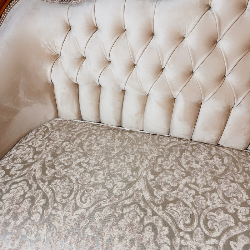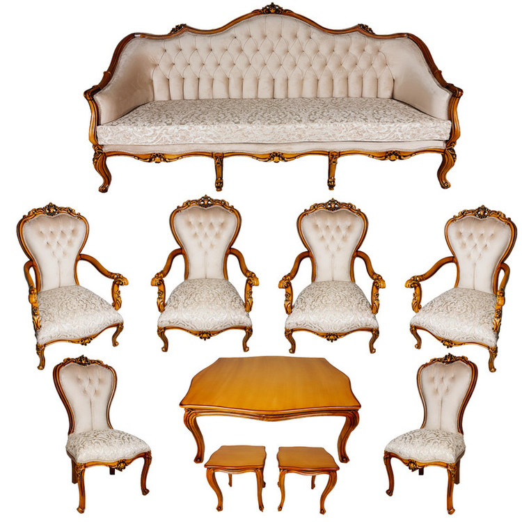 رنگ محصول دقیقا مطابق عکس های هوم لند است . بسته بندی شده و با وانت درب منزل (ارسال توسط فروشنده) تحویل میشود. سه نفره بزرگ چهار عدد تک نفره دو عدد میزبان یک عدد میز و دو عدد عسلی
