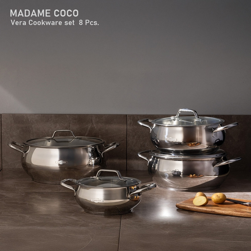 ظرافت را در آشپزخانه خود با سرویس 8 پارچه مادام کوکو ساخت ترکیه تکمیل کنید. با استفاده از دسته های راحت و طراحی چشم نواز آن، می توانید در طول روز به پخت غذاهای دلخواهتان می خواهید برسید. محصولات مادام کوکو از سالیان دور جای خود را در خانه و آشپزخانه های مردم جهان باز کرده و همچنان با کیفیت عالی و بی نظیر محصولات خود سبب شده تا مشتریان با علاقه وافر جهت تهیه و استفاده از این محصولات اقدام کنند. این محصول هشت پارچه دارای چهار عدد قابلمه استیل ، و چهار عدد درب قابلمه می باشد. این محصول از ظرفیت عالی برخوردار هست. جنس محصول تضمینی و مادام العمر می باشد که از استیل ضد زنگ تولید شده است