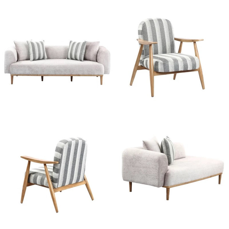 پایه های سه نفره و شزلون مبل بصورت جدا هست که برای سهولت باربری و اسیب کمتر به پایه ها هر رنگ پارچه با رنگ پارچه راه راه هم رنگ خودش ست میشه