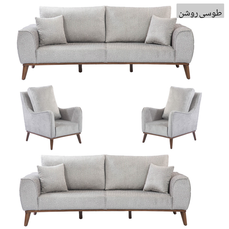 در مقایسه ی قیمت ها به برند مبدا پارچه و نبز تراکم اسفنج توجه شود همراه هر کاناپه دو کوسن قرار دارد
