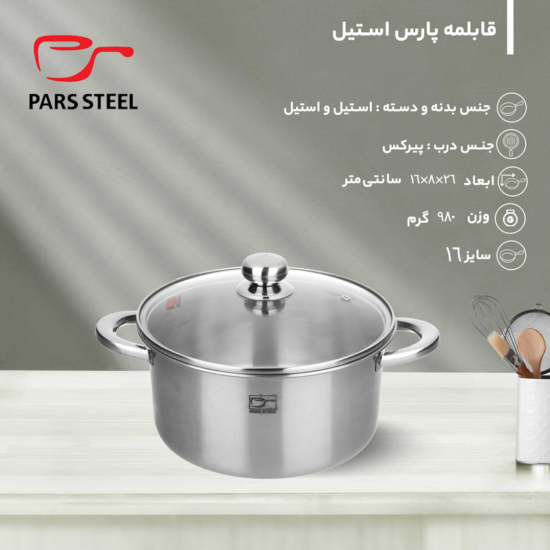 - استیل ضد خط و خش - کفه سه لایه آلومینیومی جهت جلوگیری از چسبندگی و سوختن غذا - درب پیرکس با سوپاپ تخلیه بخار - قابل استفاده در فر - قابل شستشو در ماشین ظرفشویی