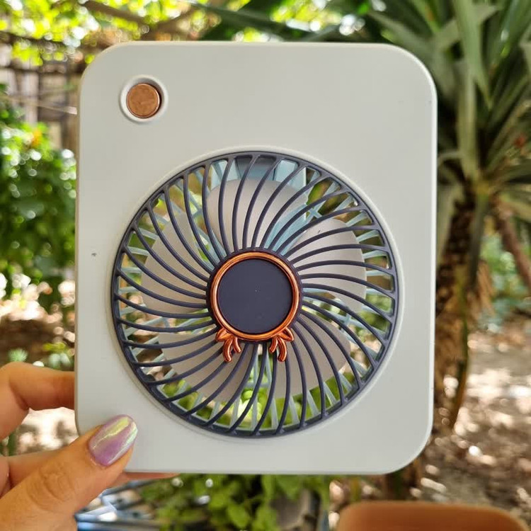 سایر مشخصات: مینی فن رومیزی شارژی با طراحی شیک شامل سه درجه سرعت متفاوت و همچنین درگاه شارژ USB میباشد. این فن کوچک پرتابل به راحتی تنظیم میشود و پایه آن ثابت و مقاوم و از لرزش روی میز جلوگیری میکند.