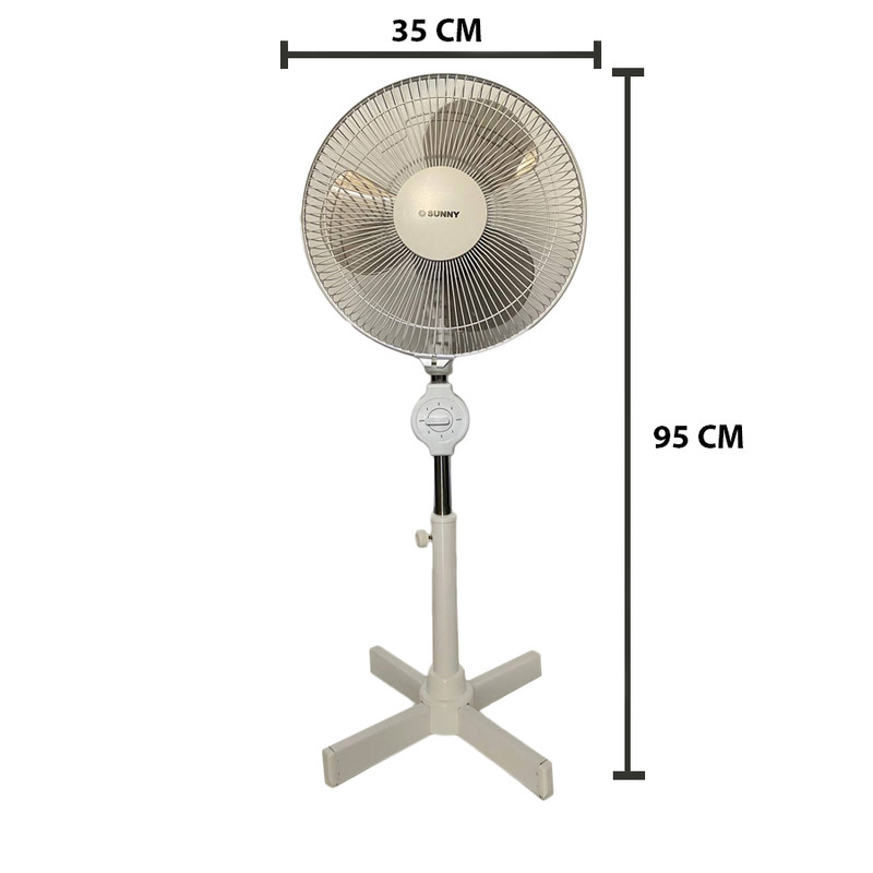 مینی پنکه ی سانی مدل اکونومی پنکه ای پایه دار با ابعادی جمع و جور و کوچک است که در محیط های اداری و خانگی قابل استفاده می باشد.این پنکه با وجود ابعاد کوچک قدرت باد زنی بسیار خوبی دارد.مدل حرکت سر پنکه به صورت چرخش مستمر به چپ و راست است که می توانید با دکمه ی روی محصول حرکت و توقف چرخش آن را انتخاب کنید.ارتفاع حدودی پنکه حداکثر 95 سانتی متر است و حداقل 85 سانتی متر است (قابلیت 10 سانتی متر کم و زیاد کردن ارتفاع با بدنه ی تلسکوپی و جمع شونده).قطر قسمت بالایی پنکه حدود 35 سانتی متر است و یک پروانه ی سه پره را در خود جا داده است.این پنکه دارای تنظیم سرعت سه حالته ی آنالوگ می باشد (بدون کنترل از راه دور) و بسیار کم صداست.
