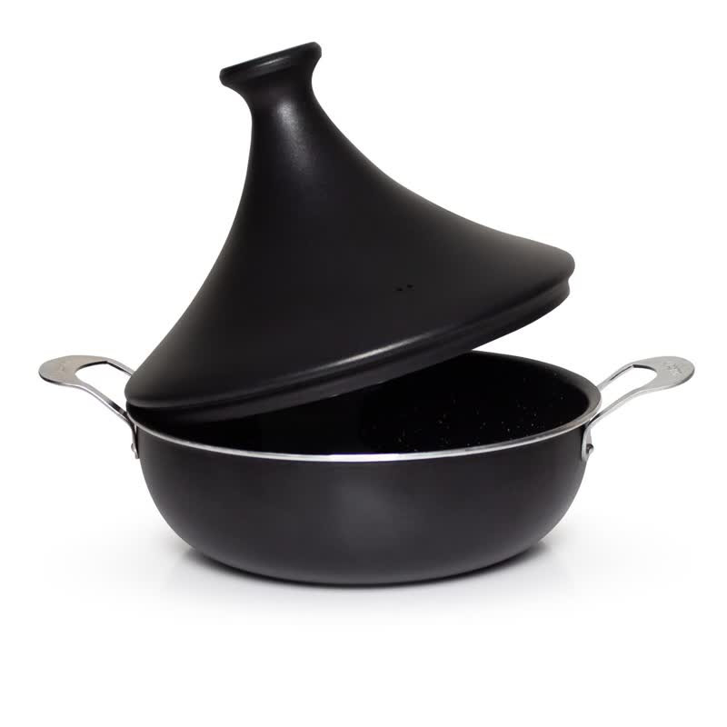 این محصول از یک تابه دو دسته با ارتفاع بیشتر از حد معمول در سایز ۲۶ سانتی متر و یک درب مراکشی که برای نظافت و کیفیت بیشتر غذا دو رو گرانیت تولید شده است . پس این محصول هم در تابه هم در درب آن دو روگرانیت می باشد.