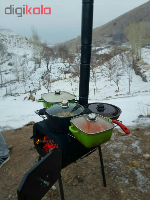 بخاری هیزمی کمپینگ وسیله ای بسیار کارامد به منظور پخت و پز و همچنین گرمایش قابل استفاده در سفر و حتی داخل شهر و پارک می باشد. این محصول در ابعا 30x30x43 سانتی متر و با وزن 6 کیلوگرم طراحی و ساخته شده است که این مقدار وزن و ابعاد گویای حمل راحت آن است. همچنین جنس بدنه این محصول ورق یک میلیمتری آغشته به رنگ مشکی نسوز می باشد. همچنین به منظور حمل راحت محصول پیش رو یک عدد کیف حمل به همراه محصول ارائه شده است.