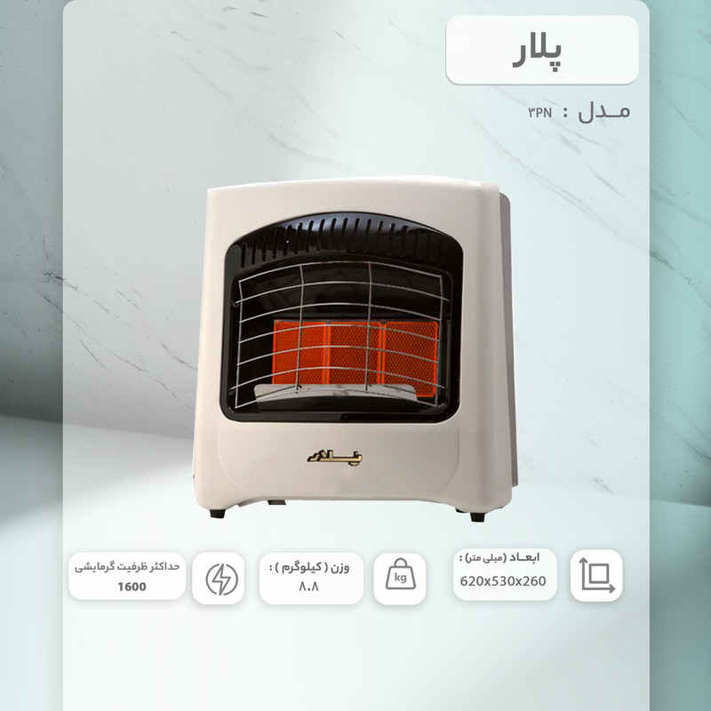 نوع سوختگاز شهرینحوه نصب و قرارگیریدیواری , زمینحداکثر ظرفیت گرمادهی4500راندمان حرارتی99ارتفاع620 سانتیمترطول530 سانتیمترعرض260 سانتی متروزن8800 گرمرنگکرم