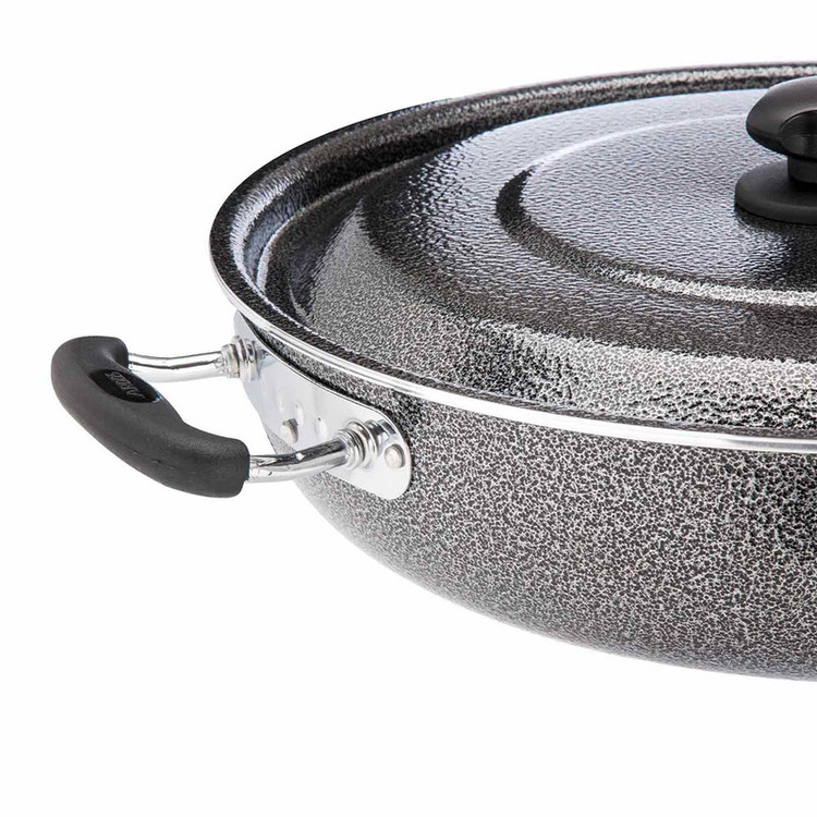 - دارای یک درپوش فلزی - دسته ترکیبی از الترامید و فلز - طول با احتساب دسته 64 و قطر داخلی تابه 52 سانتیمتر - ابعاد بستهبندی: 54 × 15 × 56 سانتیمتر