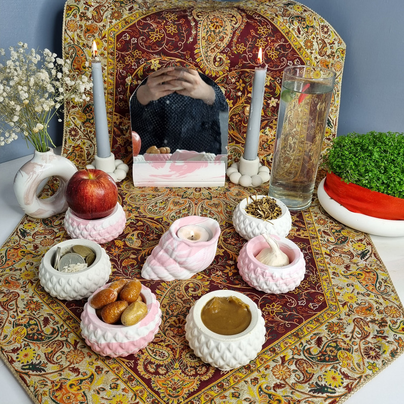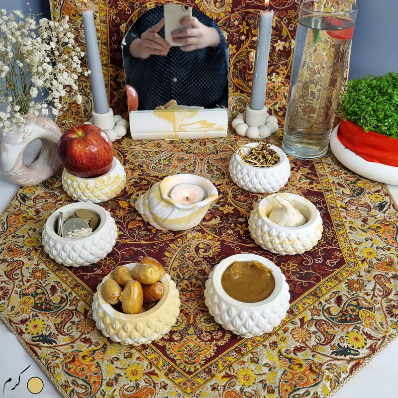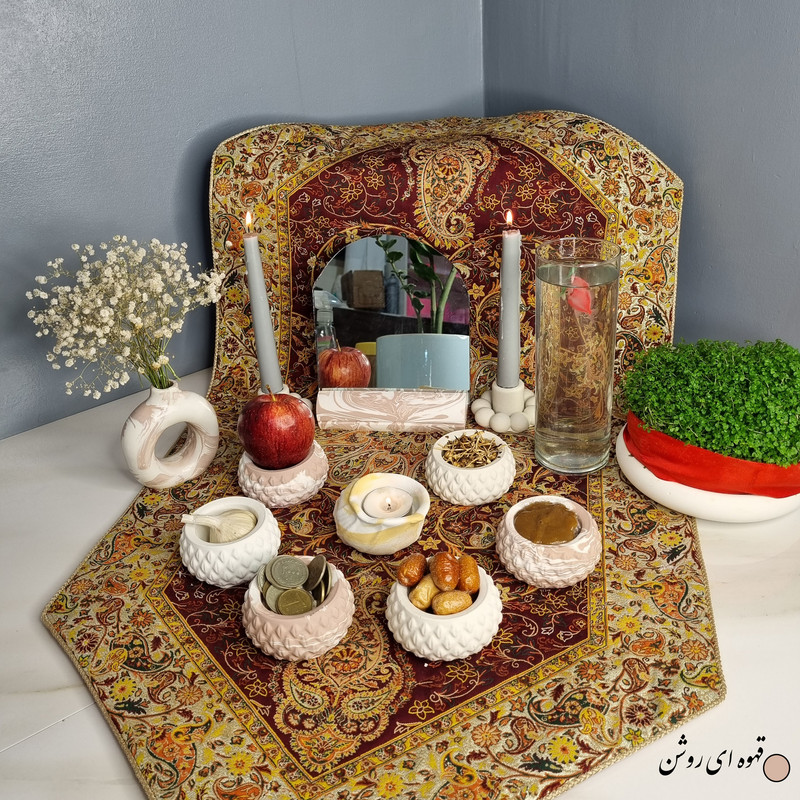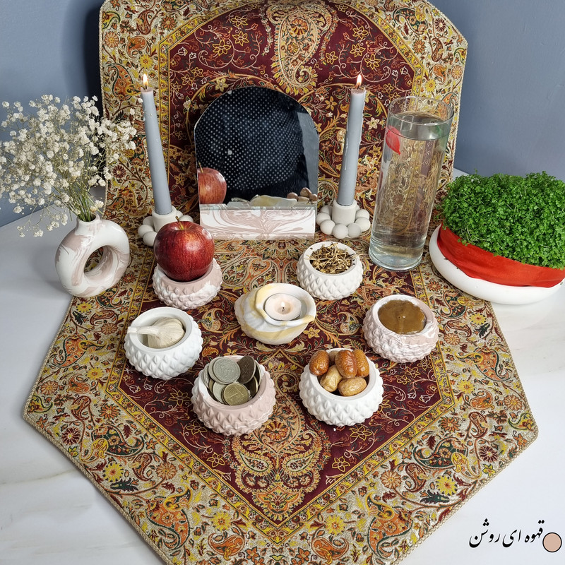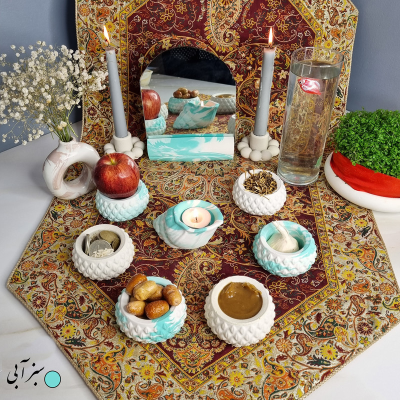 یک هفتسین کوچک و به صرفه اقتصادی، جوانب زیبایی و معنوی هفتسین را در یک فضای کمحجم به شما معرفی میکند. این محصول، شامل آینه، دو شمعدان، شش ظرف کوچک با طرحهای زیبا، و یک جاوارمری با طرح صدف است. با این هفتسین جمع و جور، شما میتوانید تمام نمادهای مهم نوروز را در فضای محدود خود گنجانده و لحظاتی شاد و پر از هنر و زیبایی را به اشتراک بگذارید. این هفت سین زیبا ابر و بادی یک گزینه ایدهآل برای کسانی است که به دنبال یک آغاز سال نو معنوی و زیبا هستند و همچنین توجهی به محیط قرارگیری هفت سین و صرفه ی اقتصاد آن دارند.