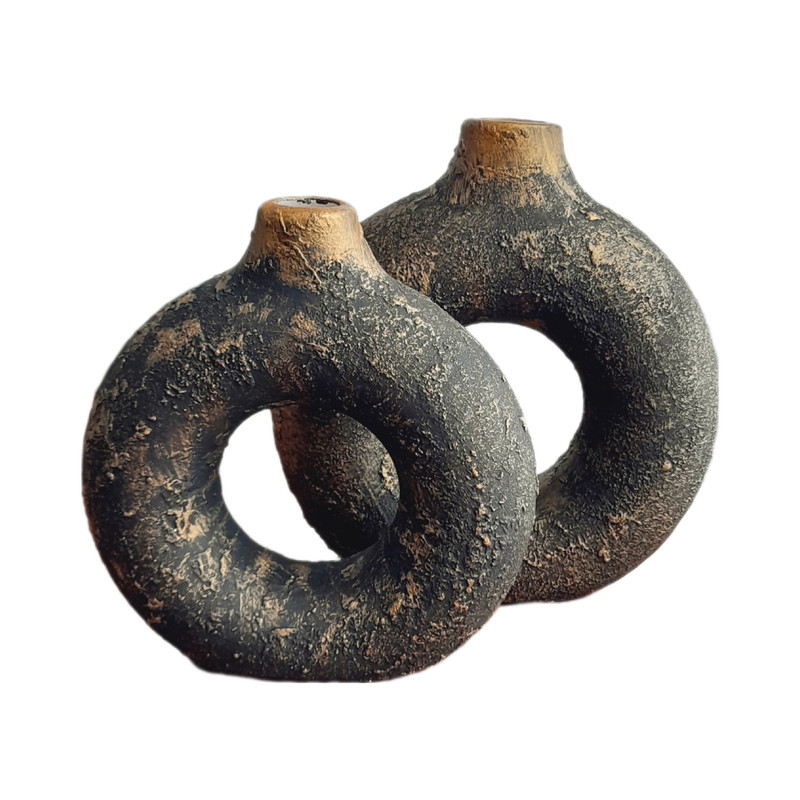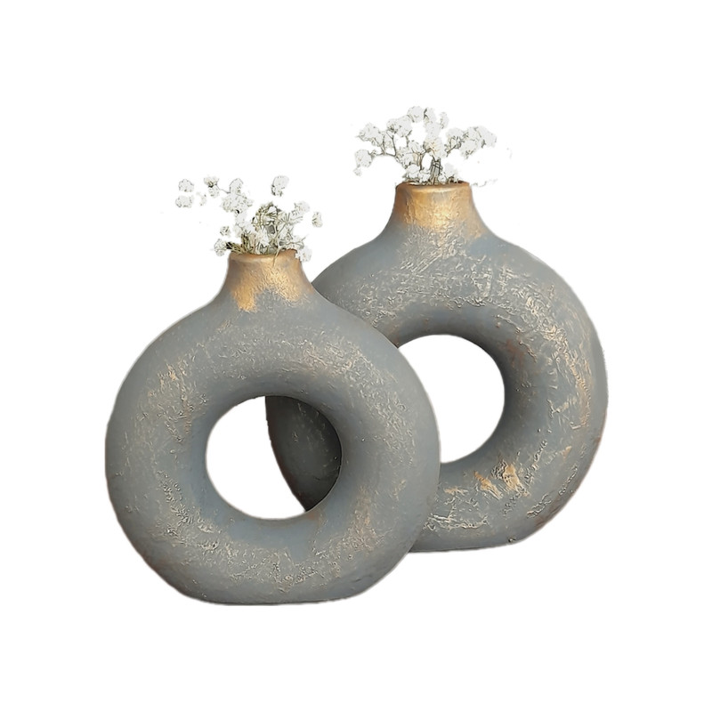 گلدان دکوری مدل دونات انتخابی زیبا و خوب برای اکسسوری در منزل و در محل کار شما عزیزان ، و همچنین برای هدیه دادن به دوستان و عزیزان شما. این گلدان دکوری زیبا و مینیمال را به همراه چند شاخه گیاه خشک هم میتوانید استفاده کنید. بدنه گلدان قابل شستوشو و همینطور رنگ ثابت دارد ، و همینطور بدنه گلدان پتینه های ریز دارد تا زیبایی گلدان را دوچندان کند.