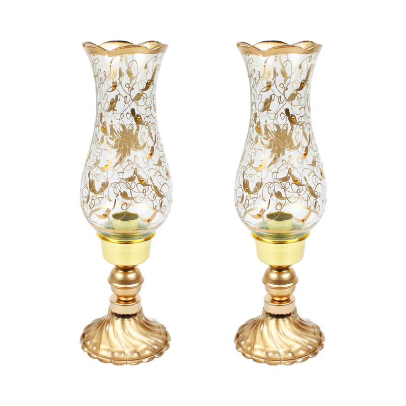نوع شمعدانرومیزیویژگیهای خاصدارای پایهجنس پایهشیشهمناسب برای شمعاستوانهایابعاد23x14x28 سانتیمتروزن1150 گرمابعاد محل قرارگیری شمع5.5*5.5*1 سانتی متررنگطلایی