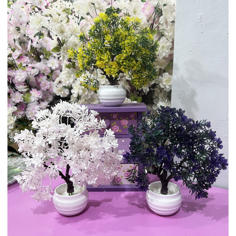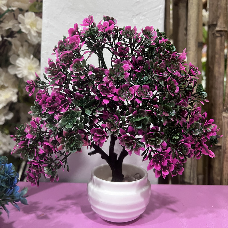 گلدان به همراه گل مصنوعی مدل درختچه زندگی مینیاتوری 02