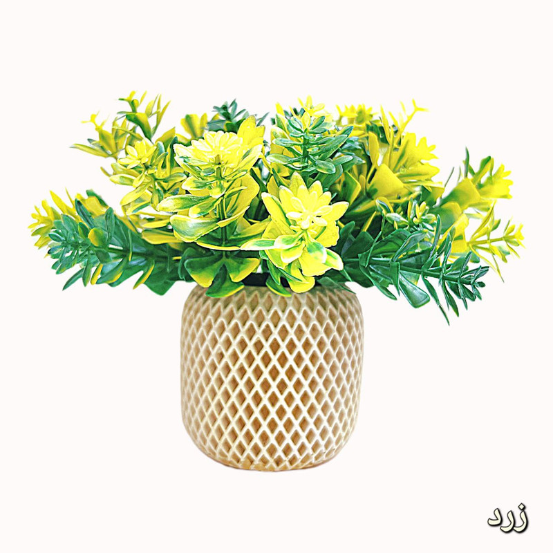 گلدان به همراه گل مصنوعی طرح میخک مدل زنبوری کد S31
