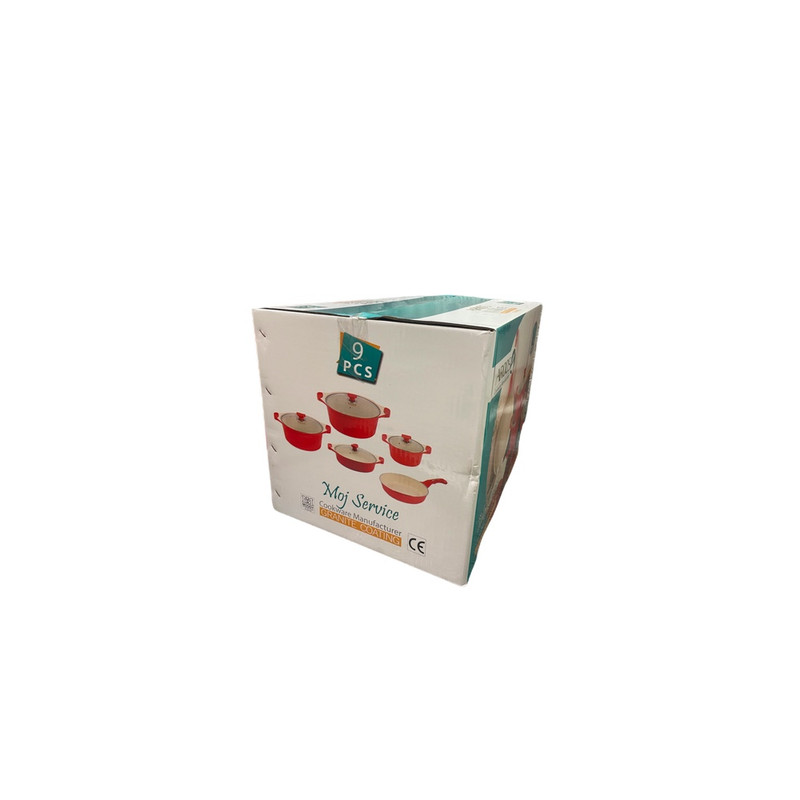 سرویس 9 پارچه برند عروس تفلون مدل موج ساخته شده از بهترین متریال که شامل 1 عدد قابلمه سایز 20 و 26 و 32 و 2 عدد تابه که 1 عدد دوسته دربدار به سایز 28 میباشد و تابه دیگر سایز 26 تک دسته بدون درب میباشد .