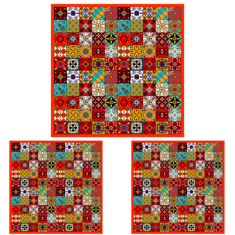 پارچه شانل درجه یک با رنگ ثابت قابل شستشو با مواد شوینده به دفعات دارای لایی در پشت کار برای ایستایی بهتر شامل سه تکه 70x70یک عدد و 40x40 دوعدد