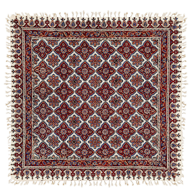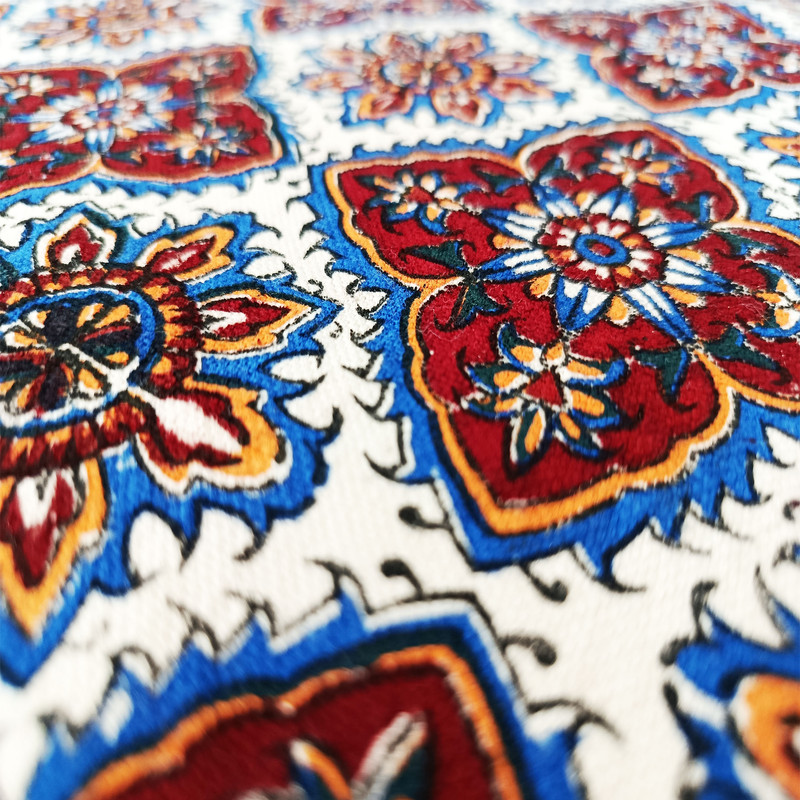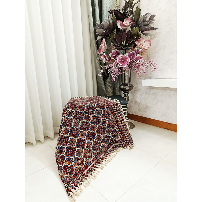 سفرهی قلمکار مدل «خشتی» یک محصول زیبا و اصیل ایرانی است که با طرحهای سنتی و نقوش هندسی منظم خود جلوهای چشمنواز به هر فضای پذیرایی یا سفرهآرایی میبخشد. این طرح که با چهارخانههای تکرارشونده و نقشهای اسلیمی و گلوبوتهای تزئین شده، از رایجترین و محبوبترین سبکهای قلمکار اصفهان به شمار میرود. رنگبندی گرم و هماهنگِ سرمهای، لاکی و کرم در کنار چاپ دستی هنرمندان اصفهانی، باعث شده این سفره نهتنها کاربردی باشد، بلکه نقش یک اثر هنری را نیز ایفا کند. پارچهی بهکاررفته معمولاً از کتان یا پنبهی باکیفیت است که دوام بالا و قابلیت شستوشوی آسان دارد. ریشهدوزی اطراف سفره نیز به زیبایی کار افزوده و باعث شده این اثر برای استفاده در مهمانیها، تزئین میز، چیدمان سنتی، یا حتی هدیه دادن بسیار مناسب باشد. این سفره با ترکیب اصالت، کیفیت و زیبایی، حس و حال هنر ایرانی را در هر محیطی زنده میکند.