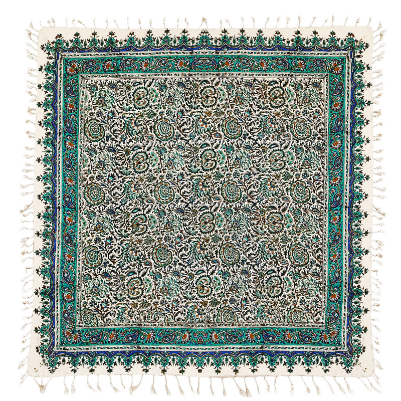 سفرهٔ قلمکاری مدل گل اناری در تصویر، اثری زیبا از هنر اصیل ایرانی است که با طرحهای ریزنقش اسلیمی و ختایی درهمتنیده شده و جلوهای چشمنواز پدید آورده است. زمینهٔ روشن پارچه، بستری مناسب برای نمایش نقشهای گل اناری، برگها و نقوش پیچکی به رنگهای فیروزهای، لاجوردی، سبز و قهوهای فراهم کرده و ترکیب این رنگها هویتی سنتی و در عینحال آرامبخش به محصول داده است. حاشیههای چندلایه با طراحی منظم و هماهنگ، قاب زیبایی برای متن سفره ساختهاند و ریشههای اطراف، حس دستی و اصالت بیشتری به آن میبخشند. این سفره انتخابی ایدهآل برای سفرهآرایی سنتی، استفاده در مهمانیها، یا حتی دکوراسیون منزل است و بهراحتی میتواند فضای هر محیطی را گرمتر و ایرانیتر جلوه دهد.