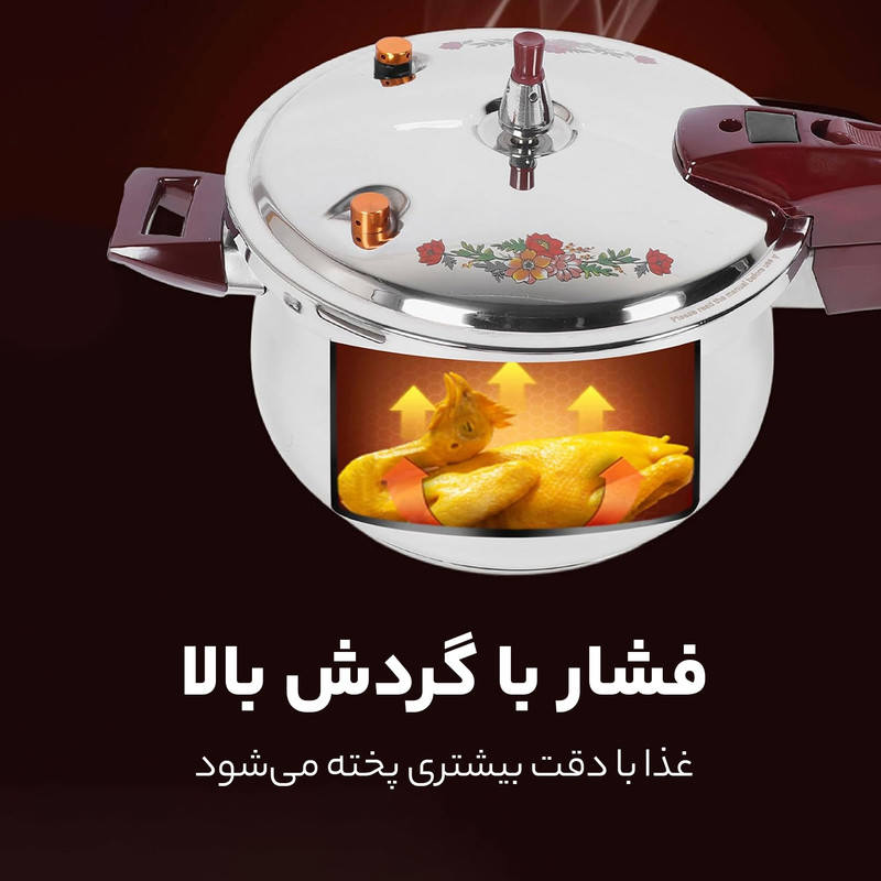 ظرفیت زودپز یا قابلمه بر حسب نفر: ظرفیت 6 تا 8 لیتر برای 4 تا 5 نفر