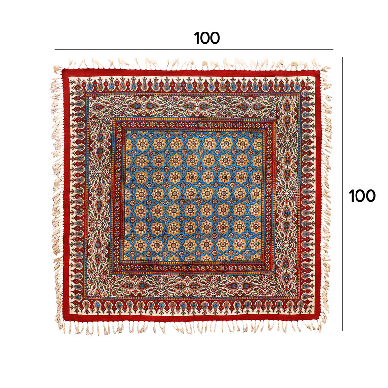مشخصات فیزیکی: این سفره با ابعاد ۱۰۰×۱۰۰ سانتیمتر و فرم مربعی، گزینهای مناسب برای استفاده روی میزها یا بهعنوان رومیزی تزئینی است. پارچهی نخ پنبهای با چاپ دستی و رنگهای گیاهی، در کنار ریشهدوزی ظریف در لبهها، اصالت و کیفیت این محصول را دوچندان کرده است. طراحی پرجزئیات در زمینهی کرم با ترکیب رنگهای گرم، جلوهای سنتی و چشمنواز به دکور منزل یا محل کار شما میبخشد. نوع هنر: این محصول حاصل هنر اصیل قلمکاری است؛ شیوهای که در آن، نقوش سنتی بهوسیله قالبهای چوبی بر روی پارچه چاپ میشوند. رنگها از مواد طبیعی استخراج شدهاند تا علاوهبر زیبایی، سلامت و ماندگاری نیز داشته باشند. شرایط نگهداری: برای حفظ کیفیت پارچه و ماندگاری رنگها، از شستوشو با ماشین لباسشویی خودداری شود. بهتر است آن را با دست و با آب سرد شستوشو داده و از شویندههای ملایم استفاده شود. خشککردن زیر نور مستقیم خورشید توصیه نمیشود.