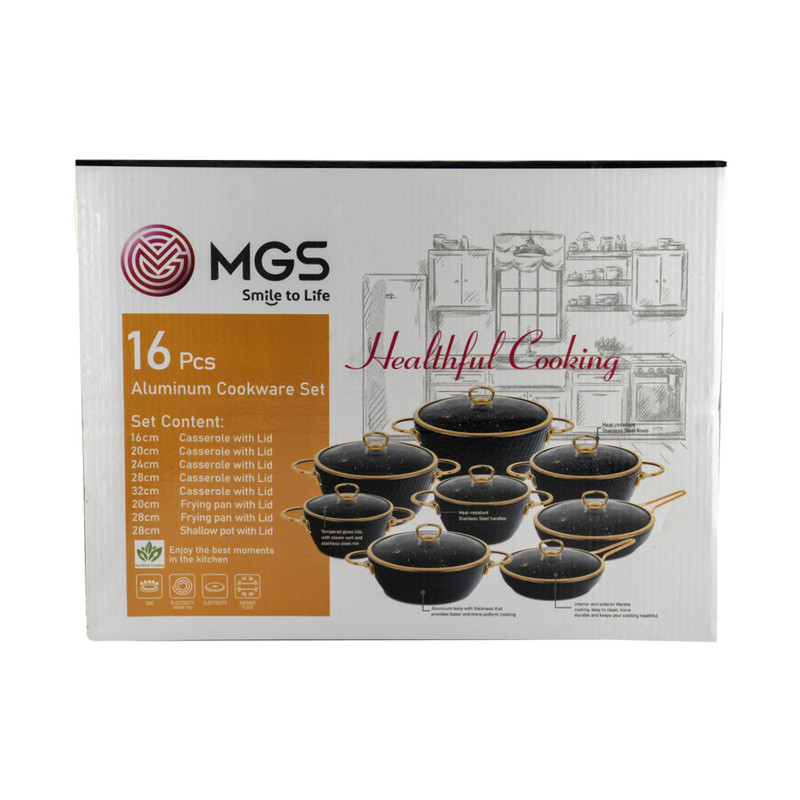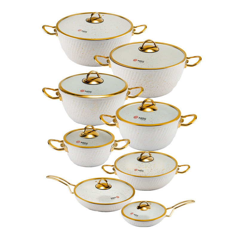سرویس قابلمه 16 پارچه فورج طرح ماینز سری دوم یک سرویس ظروف پخت و پز عالی برای هر سلیقهای است. این ست شامل پنچ قابلمه در سایزهای 16/20/24/28/32، یک تابه دو دسته سایز 28 و دو تابه تک دسته سایز 28 و 20 است.