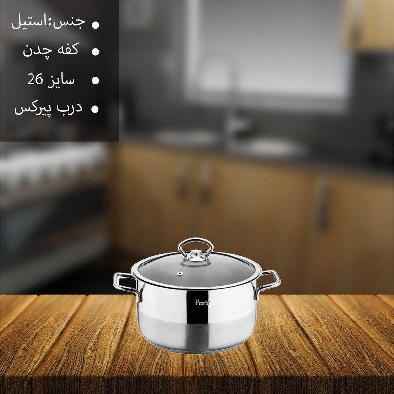 ابعاد30x26x15 سانتیمتروزن2000 گرمسایز26جنس بدنهاستیلجنس روکش داخلیاستیلجنس دستهاستیلسازگار بااجاق گازقابل شستوشوبا دسترنگاستیل