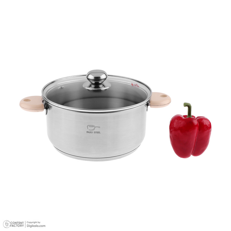 سرویس پختوپز ۳ پارچه پارس استیل مدل رایکا (کد ۲۰۲۴)، مجموعهای باکیفیت و ساخت ایران است که با بهرهگیری از تکنولوژی روز، انتخابی ایدهآل برای آشپزی سالم محسوب میشود. ساختار بدنه و جنس روکش داخلی این سرویس از استیل ضدزنگ با گرید غذایی ساخته شده که با بهرهمندی از کفه سه لایه، طراحی مناسب جهت پخش بهتر گرما را تضمین کرده و از چسبیدن مواد غذایی جلوگیری میکند. این مجموعه شامل یک قابلمه و یک تابه دو دسته (هر دو در سایز کاربردی ۲۴ سانتیمتر) است که با یک جنس در ترکیبی از استیل-شیشه پوشانده شدهاند. از ویژگیهای خاص این سرویس، نوع دسته آن است که بهصورت جداشونده از جنس باکالیت مقاوم طراحی شده؛ این قابلیت به شما اجازه میدهد ظروف را بهراحتی درون فر قرار داده یا فضای کمتری در کابینت اشغال کنید. این محصول نچسب، علاوه بر پختوپز روی اجاق گاز و اجاق برقی، کاملاً با ماشین ظرفشویی سازگار با بوده و دوام بالای استیل را در کنار سهولت کاربری فراهم میآورد.