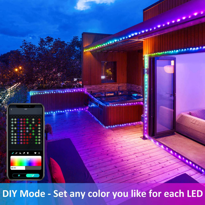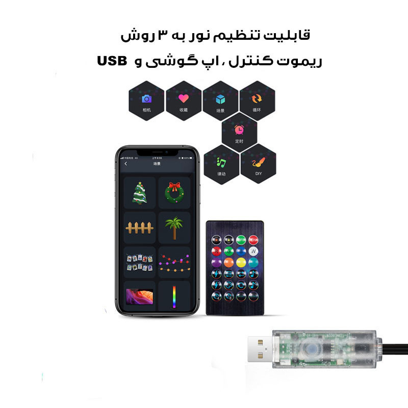 این ریسه ال ای دی rgb با طول 10 متر بدون نیاز به سیم کشی و برق شهری مناسب برای زیباسازی باغ و راه حل مناسب برای نورپردازی و دکوراسیون محیطهای داخلی و خارجی است. این ریسه ال ای دی با قابلیت تغییر رنگ و تأثیرات نوری متنوع، محیطی جذاب و شگفتانگیز را برای شما ایجاد میکند.از این ریسه ال ای دی در مکانهای مختلف از جمله منازل، ادارات، رستورانها و ... برای ایجاد نورپردازی دلخواه، تأثیرات رنگی جذاب و همچنین بهبود فضایی استفاده میشود. این ریسه ال ای دی، برخوردار از کیفیت ساخت بالا و پایداری است که به مدت طولانی میتوانید از آن استفاده کنید و فضای محیط خود را به صورت مناسب و زیبا نورپردازی کنید.
