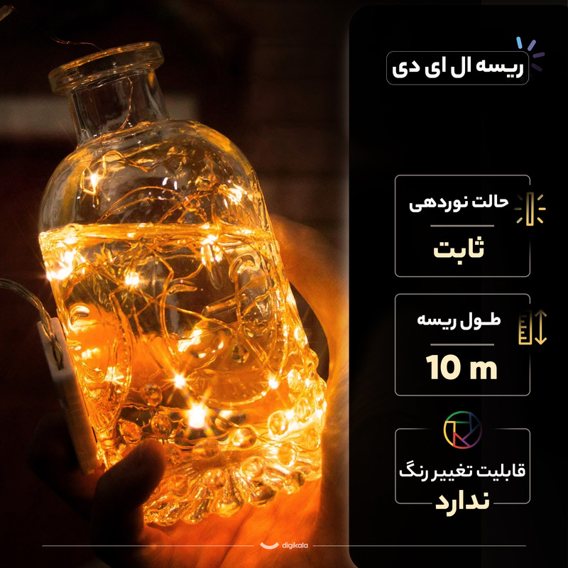 با استفاده از این ریسه، میتوانید فضای خود را با نوری دلنشین و جذاب تزئین کنید. همچنین این محصول برای استفاده در منازل، رستورانها، کافهها، مغازهها، محلهای عمومی و حتی میزهای میهمانی مناسب است. شما میتوانید این ریسه را به دلخواه به دیوارها، سقف، درختان و ستونها بچسبانید و جلوههای شگفتانگیز و دلنشینی را در محیط خود ایجاد کنید.