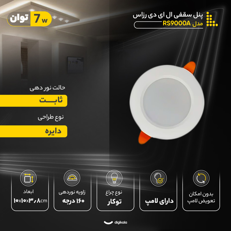 پنل سقفی ال ای دی 7 وات رزاس مدل RS9000A طرح توکار بسته 10 عددی