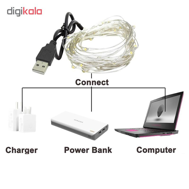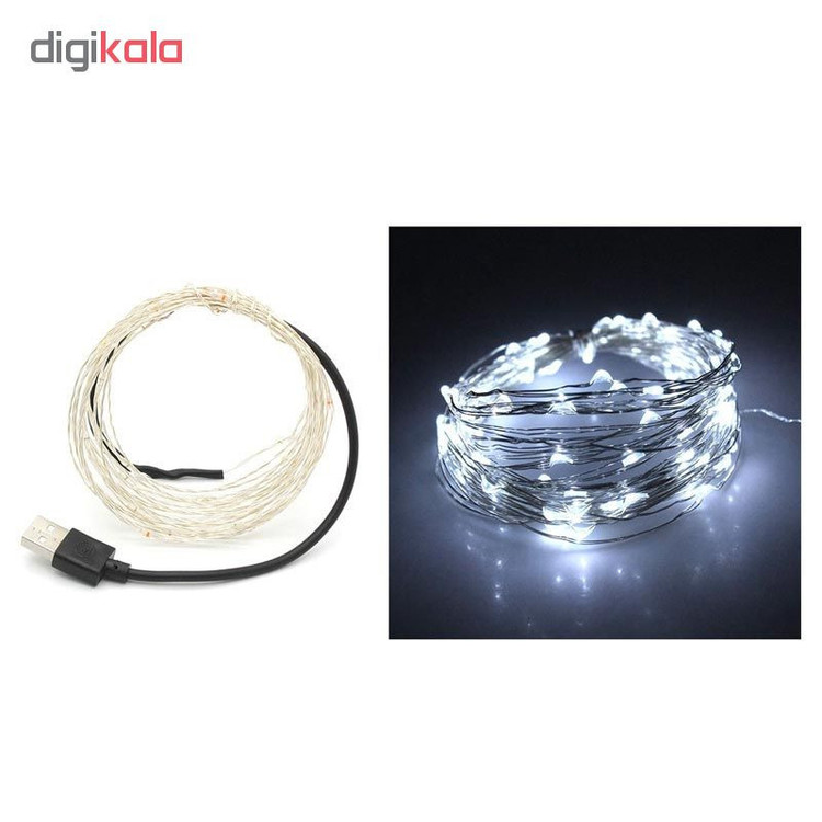 ریسه ال ای دی یکی از زیباترین و در عین حال ساده ترین وسایل دکوری و تزیینی است که می تواند محیط اطراف را روشن نموده و جلوه خاصی به آن ببخشد. ریسه led حاضر شامل یک سیم مسی نقره ای رنگ به طول 5 متر است که در سراسر آن چراغ های ال ای دی ریز قرار گرفته اند که با نور درخشنده و زیبایشان چشم های شما را خیره می سازد. این ریسه زیبا دارای یک سری یو اس بی است تا با اتصال به کامپیوتر، پاور بانک و شارژر، نیروی آن را تامین نمایید. از اتین ریسه می توانید برای مهمانی ها، جشن ها، تزیین خانه یا دکوراسیون و یا حتی روشن نمودن فضاهای مختلف استفاده نمایید. نور آن دارای رنگ های مختلفی است و در حال حاضر نور بسیار زیبای سفید رنگ موجود می باشد.