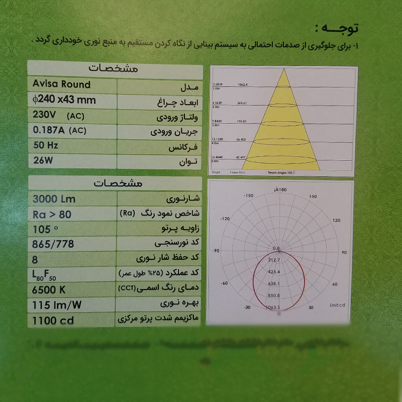 پنل ال ای دی 26 وات پارس شعاع توس مدل آویسا روکار
