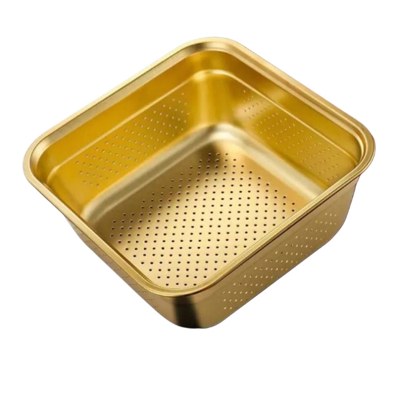 صافی سینک مدل مربع با جنس استیل و رنگ طلایی ثابت بسیار با کیفیت و کاربردی هست و جلوه بسیار خاصی دارد و براق می باشد ودر موارد دیگر هن قابل استفاده می باشد
