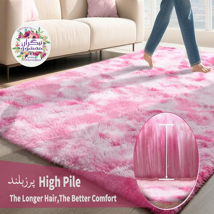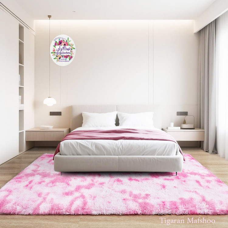 فرشینه خزپرزبلند /طرح یونیکورن ابرو بادی/ رنگ هایلایت صورتی + صورتی روشن/ زیرچرم ثابت روی سرامیک و پارکت و موکت و .../ قابلیت جاروبرقی با دور ملایم/بسیار لطیف/ ضخیم وسبک و نرم/جنبه بصری و زیبایی بالا حس بوهمی محصول .