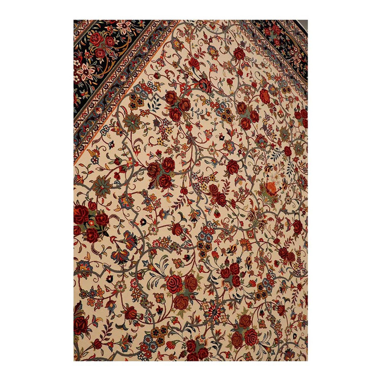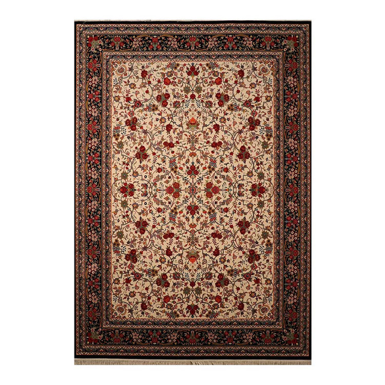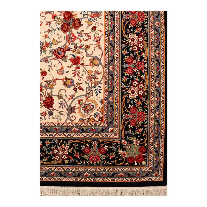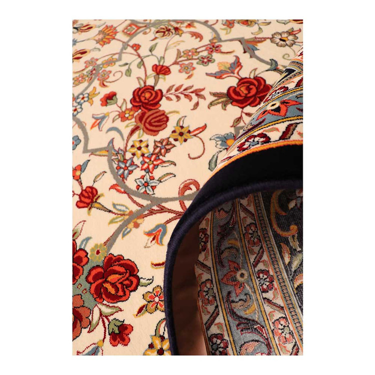 فرش ماشینی 700 شانه زمینه کرم حاشیه لاکی مدل شاهکار نوین کد N110-2509