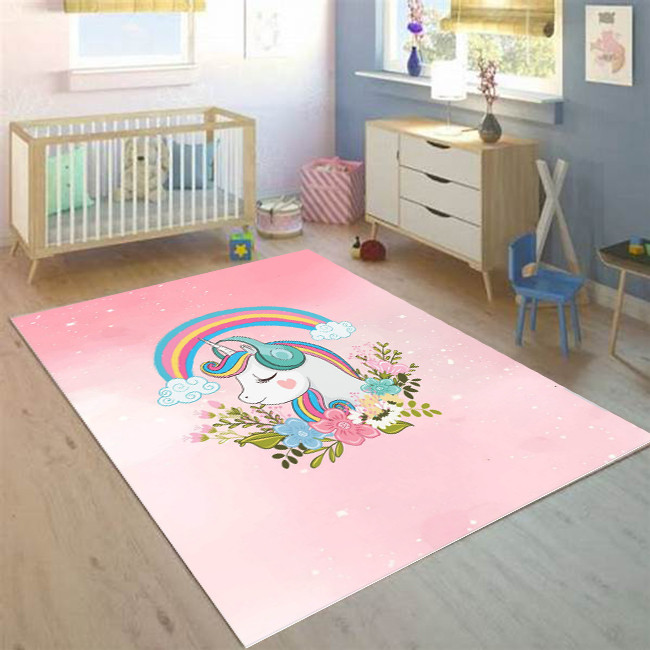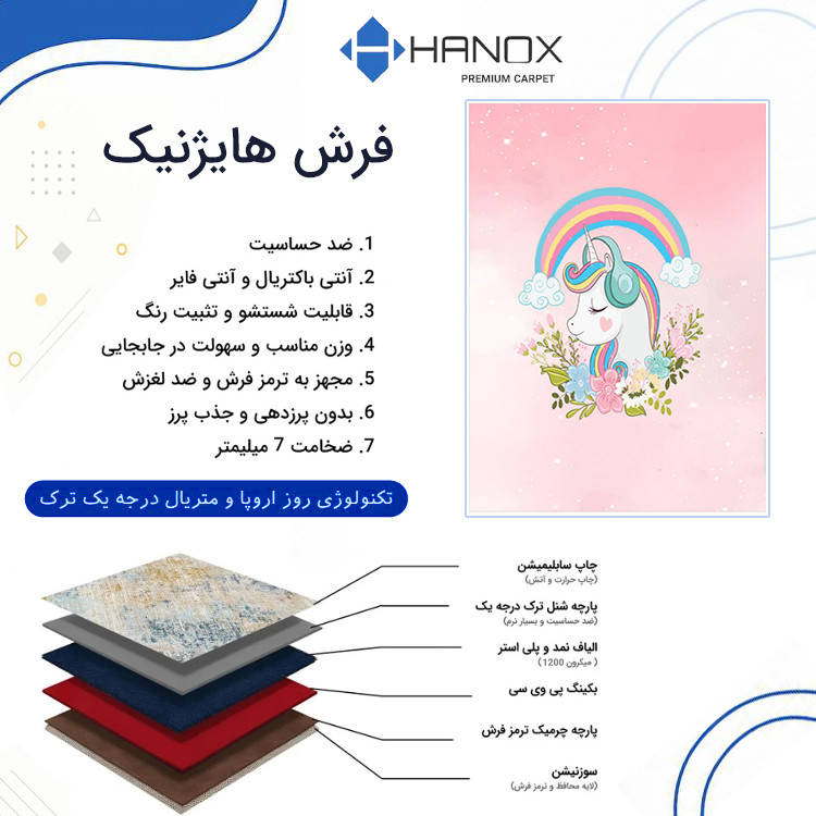 فرش ماشینی 1000 شانه هانوکس زمینه صورتی حاشیه چند رنگ مدل کودک کد U331