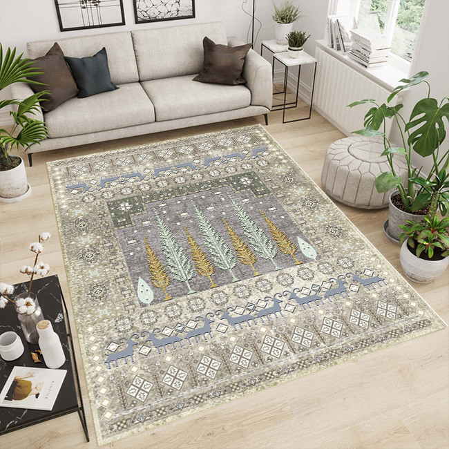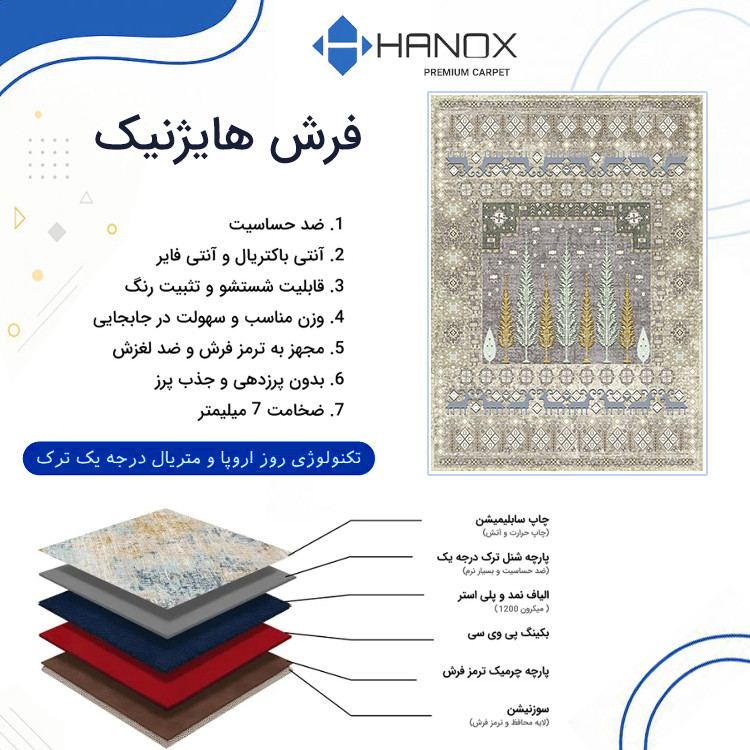 فرش ماشینی 1000 شانه هانوکس زمینه کرم حاشیه چند رنگ مدل درخت کد L292