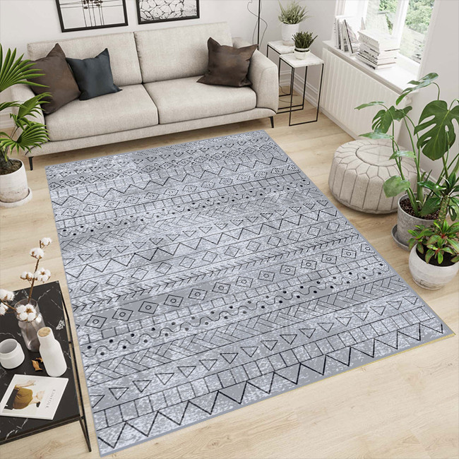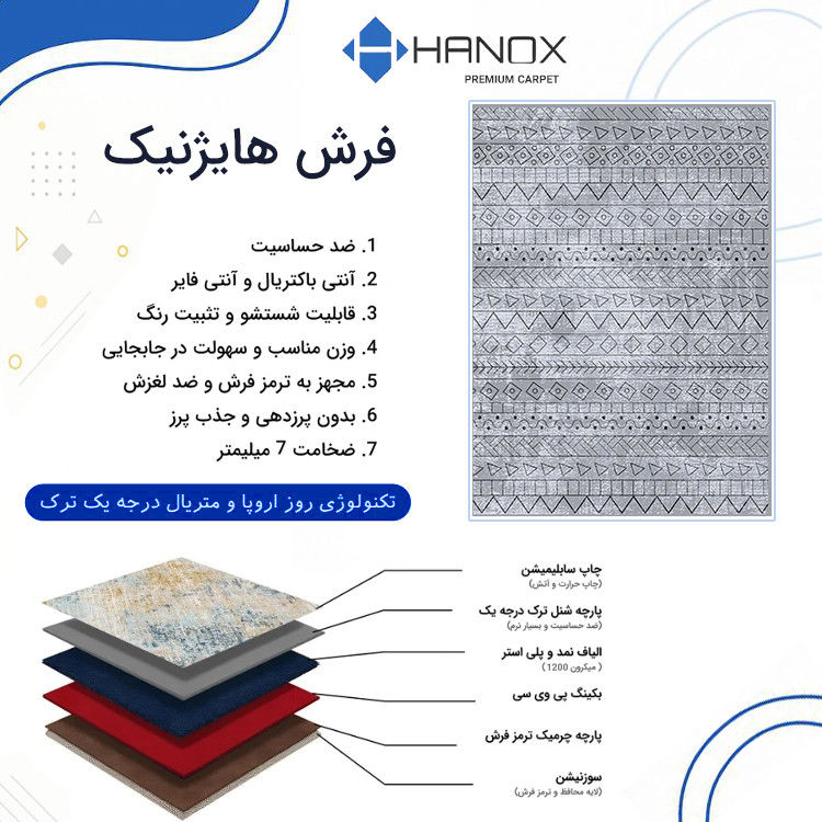 فرش ماشینی 1000 شانه هانوکس زمینه طوسی حاشیه چند رنگ مدل مراکشی کد L273