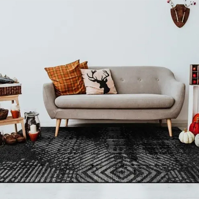 فرش ماشینی 1000 شانه هانوکس زمینه طوسی حاشیه طوسی کرم مدل مینیمال کد HANM.0020.3
