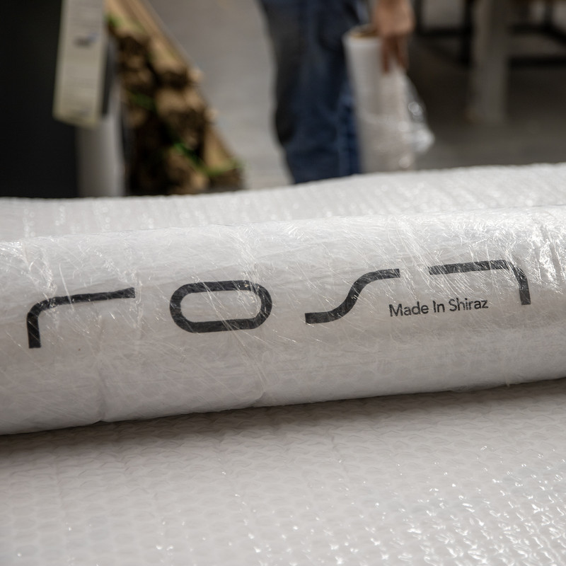 فرش دستبافت پنج و نیم متری رُست مدل هریز زمینه قهوه ای