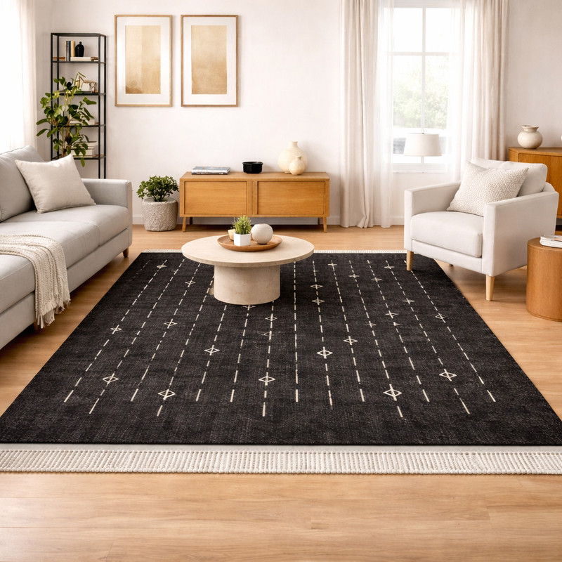 فرش ماشینی 1000 شانه هانوکس زمینه خاکستری حاشیه طوسی کرم مدل مینیمال کد HANM.0017.4