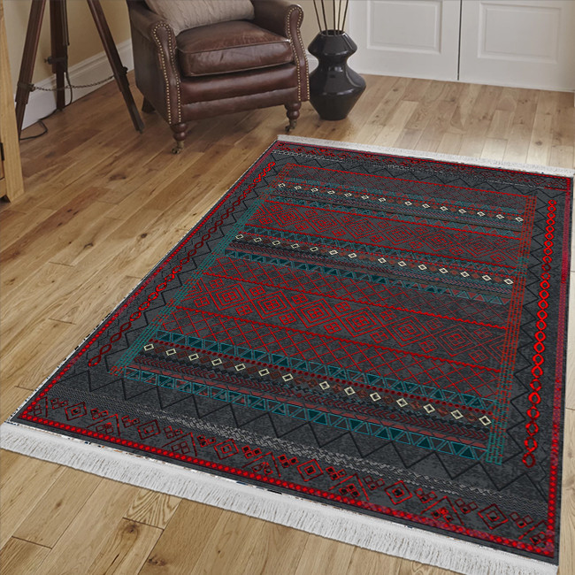 فرش ماشینی 1000 شانه هانوکس زمینه طوسی حاشیه چند رنگ مدل مراکشی کد L272