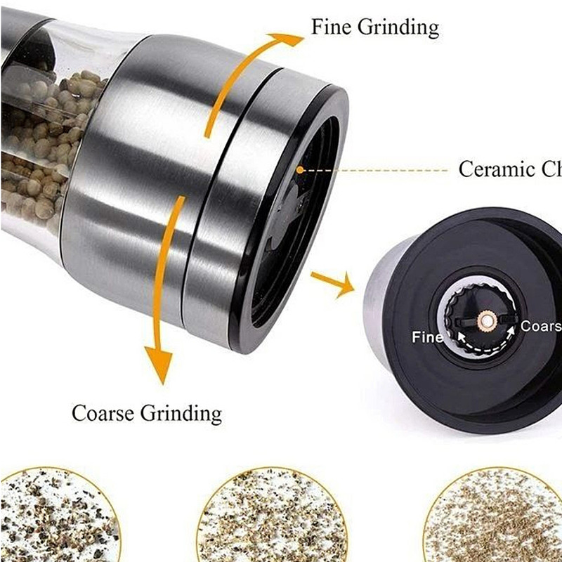 این فلفل ساب از جنس استیل با مقاومت بالا می باشد. محصول دارای تنظیم سایز آسیاب است. گنجایش بالا این محصول از نقاط قوت آن می باشد. از این محصول می توان بعنوان فلفل ساب و همچنین نمک ساب استفاده کرد.