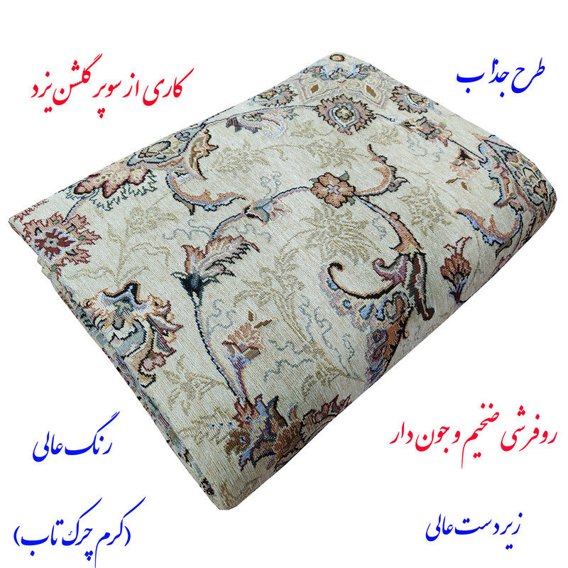 دستهبندی: روفرشیرنگ: کرمنحوه شستوشو: با دست , با ماشین لباسشویی , خشکشویینوع: ماشینیفرم طراحی: مستطیلجنس روفرشی : مخمل و شانلنمایش بیشتر