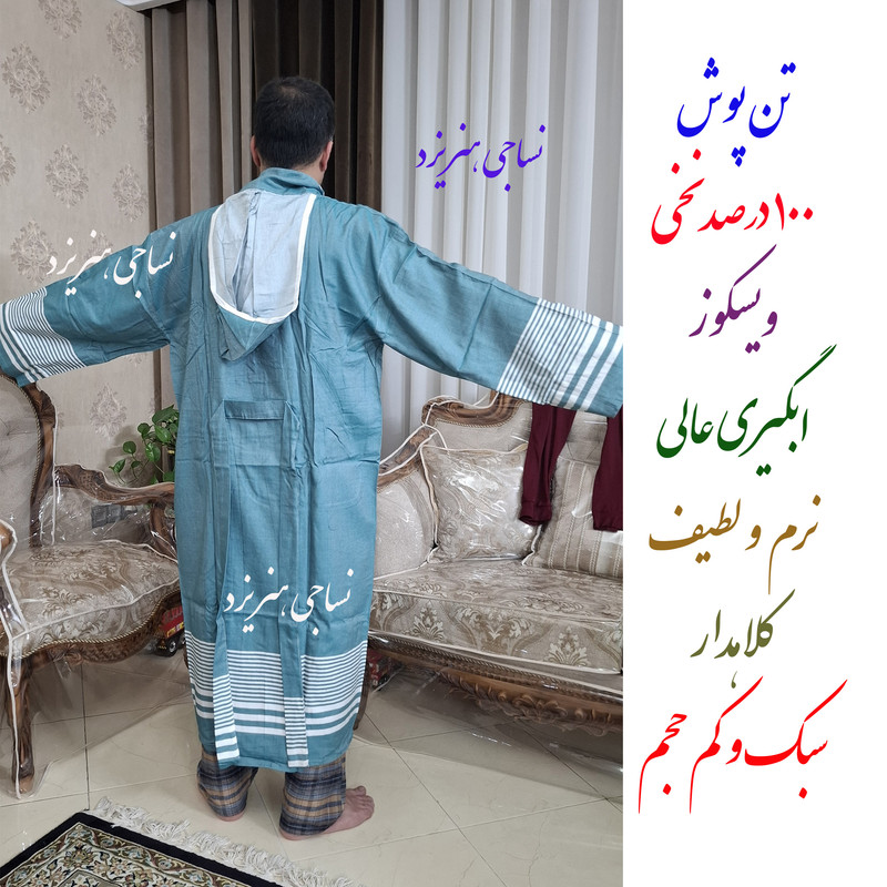 حوله تن پوش نساجی هنر یزد تولید شده از صد در صد الیاف نخ خالص ویسکوز است. نخ ویسکو الیاف نخی طبیعی اند که فوق العاده نرم و لطیف اند و آبگیری فوق تصور دارند. این حوله وزن کم و حجم کمی دارند به وری که موقع پوشیدن آن احساس راحتی زیادی می کنید. این حوله ها چندین ساله تولید شده اند و با سرعت زیادی در حال جایگزین شدن با حوله های معمولی سنگین و یوقور هستند طوریکه پیش بینی می شود تا سه سال آینده حوله های معمولی را تنها در کلکسیونی ها بتوانید پیدا کنید. ضد حساسیت اند و رنگ و پرز نمی دهند. چون صد در صد نخی اند در شستشو مقدار کمی آبرفت دارند که در در طراحی سایز آنها این آبرفت در نظر گرفته شده است. این حوله ها را با بهترین کیفیت از برند نساجی دُر هنر یزد تهیه کنید. سایز این حوله ایکس لارج یا اصطلاحا 135 است و عموما برای افراد با وزن 75 تا 105 کیلو یا حتی 110 کیلو و برای افراد با قد 170 تا 190 سانت مناسب است.